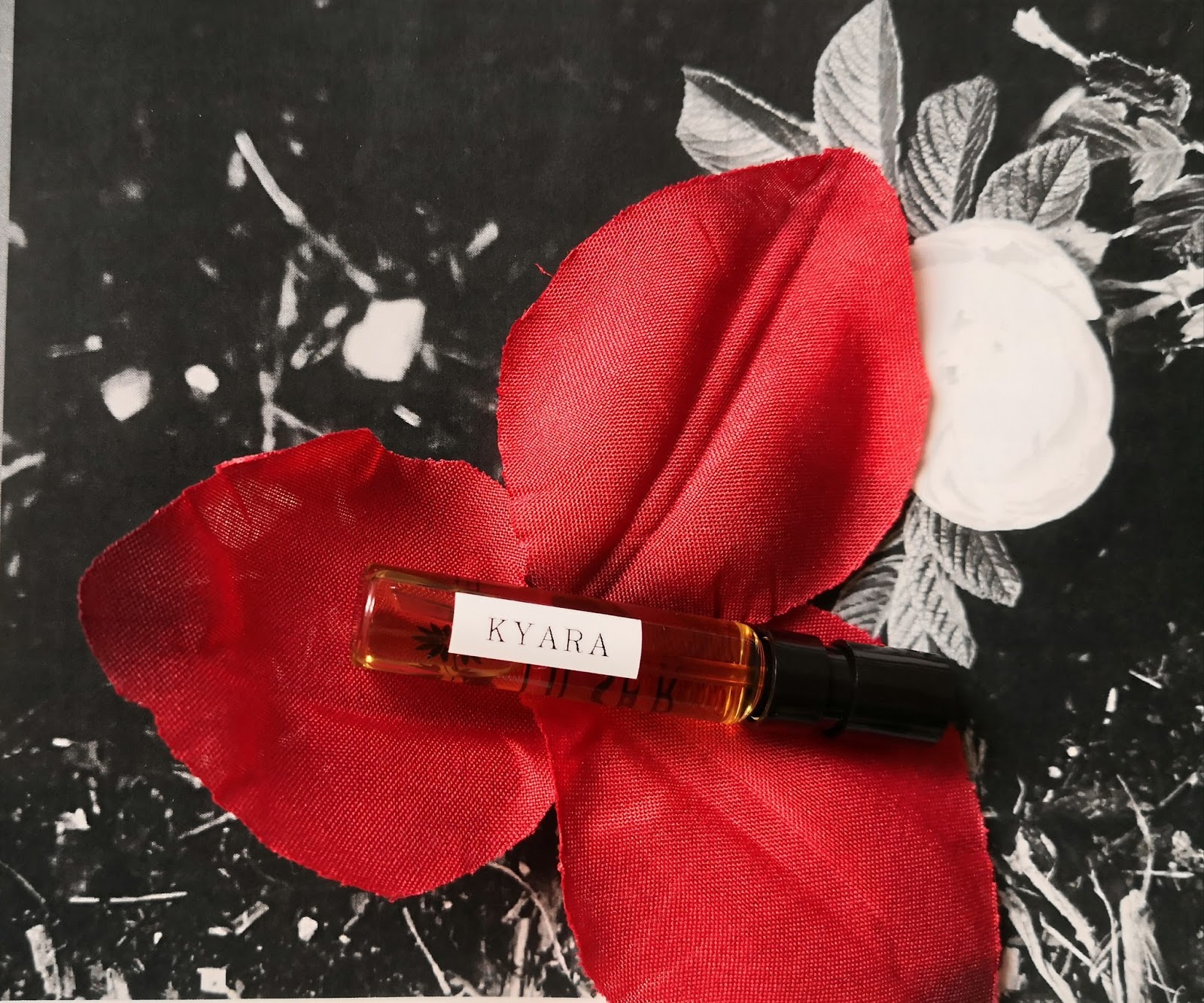 La rosa lo envuelve en un dulce abrazo romántico para reducir su amargura, con sus tonalidades frescas alimonadas y empolvadas dándole incluso luminosidad, mientras que la tuberosa potencia su carácter animálico y el sándalo le da rotundidad al añadirle un toque amaderado y cremosidad en la justa medida. El conjunto crea una armonía perfecta dejando siempre sitio a su protagonista - el Kyara, de ser en el centro de la atención. Kyara es, sin lugar a dudas, una de las fórmulas más sencillas que me han ofrecido la experiencia olfativa más compleja que he vivido hasta el momento.